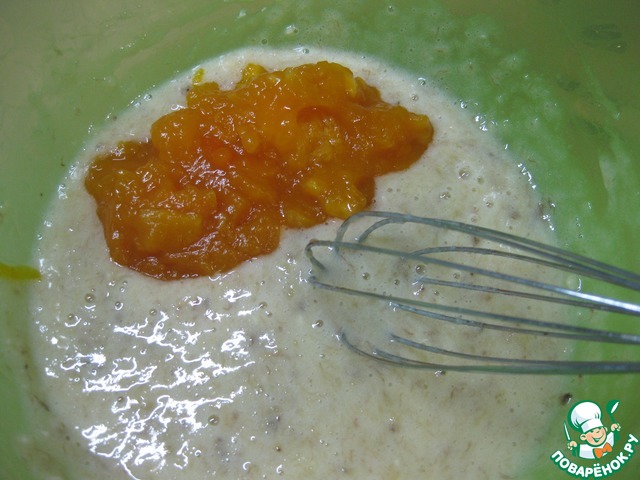 Добавить конфитюр или джем, по вкусу подходящий к бананам ( у меня домашний джем тыквенно-цитрусовый).