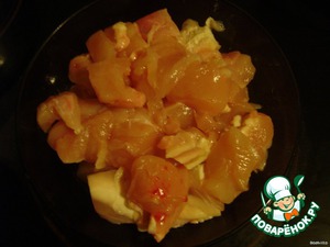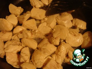 • обжариваем курочку до золотистой корочки, у кого какая плита, у меня минут 5 заняло (не до готовности обжариваем, а до корочки ; D ))