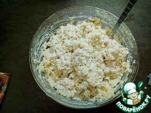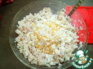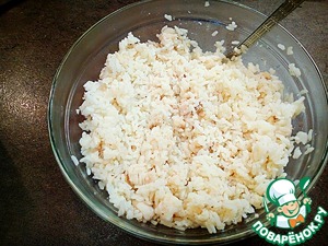 Смешиваем рыбу с рисом.