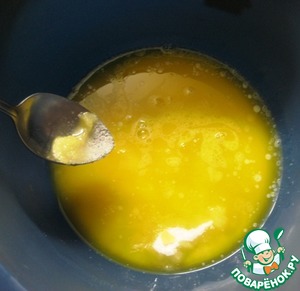 Соединить в миске растопленное сливочное масло и сахар, перемешать.