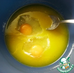 Добавить яйца и ванильный сахар, снова перемешать.