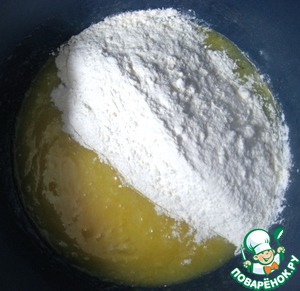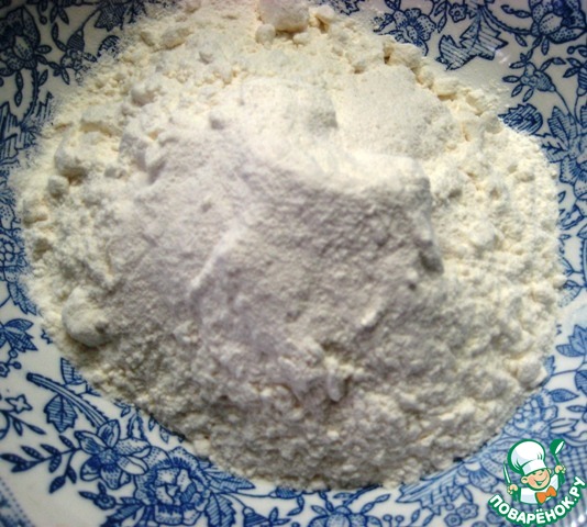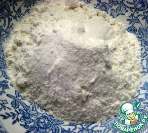 Отдельно соединить муку, разрыхлитель теста и щепотку соли. Перемешать.