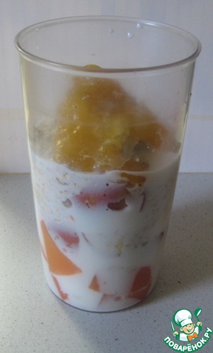 Влить молоко и тщательно взбить блендером до однородности. Разлить в стаканчики и подавать к столу!