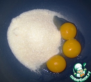 • В отдельной миске взбить сахар с желтками (белки убрать в холодильник).