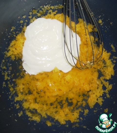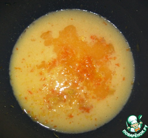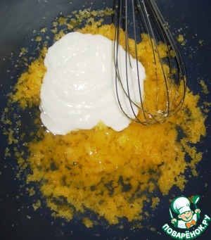 • Добавить цедру и сок из половины апельсина и цедру из половины лимона.