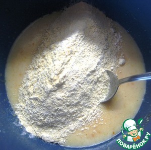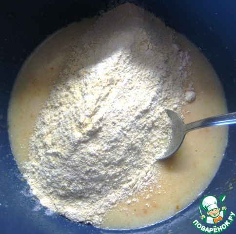 • Постепенно всыпая мучную смесь, перемешать тесто до однородного состояния.