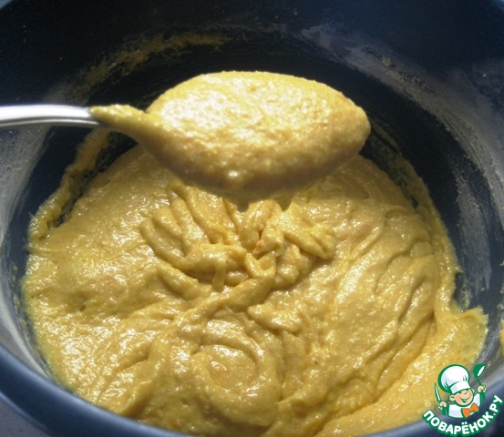 • Тесто густое, с ложки не стекает. Оставляем его постоять минут 20. За это время тесто станет еще гуще.