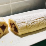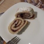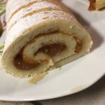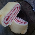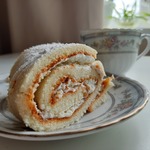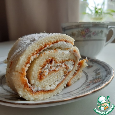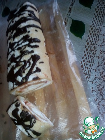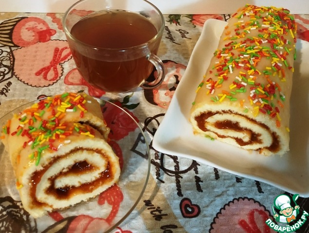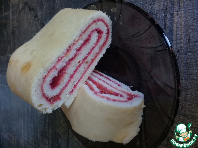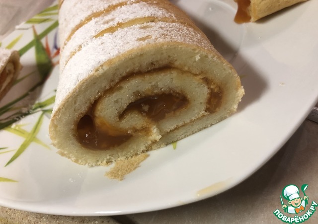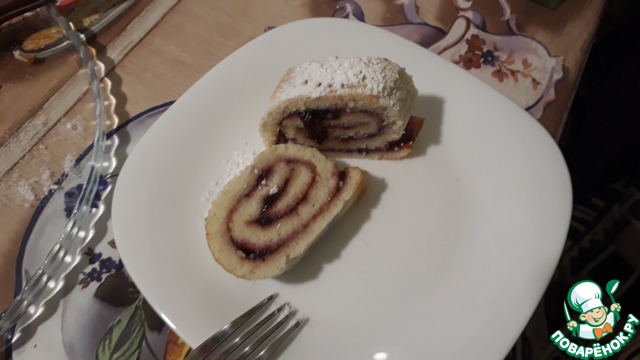 Свернуть рулет. У меня конфитюр не вытекал, край