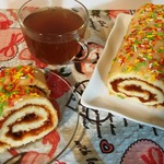 Я очень люблю сладкие рулеты. На прилавках в кондитерских магазинах они выглядят соблазнительно. Но никогда сама их не готовила. И вот на просторах инета набрела на простой, доступный рецепт тонкого бисквита для рулетов. Конечно я его приготовила. Результат потрясающий. Спасибо большое Марине Забродиной. Наполнение рулета приготовила из черничного конфитюра с миндальной крошкой.