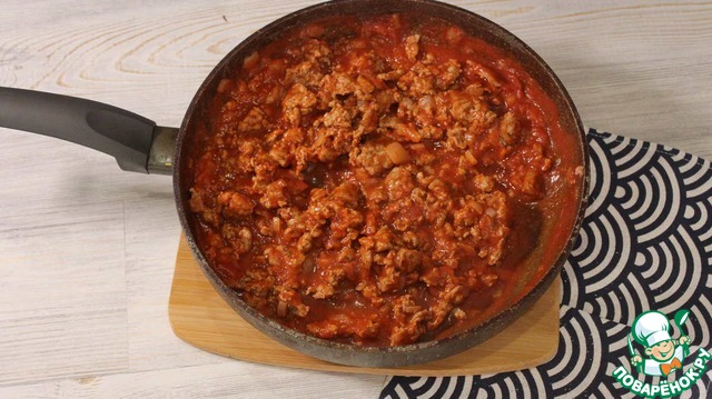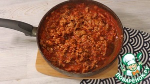 Добавляем фарш, протертые помидоры, специи, соль. Обжариваем до готовности. Протертые помидоры можно заменить свежими либо томатной пастой.