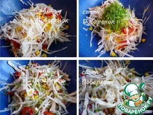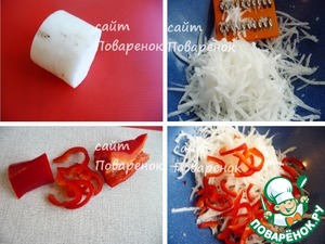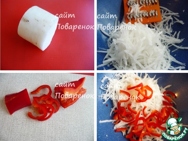 добавить к дайкону и перцу. Аккуратно перемешать.
