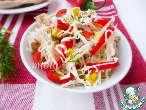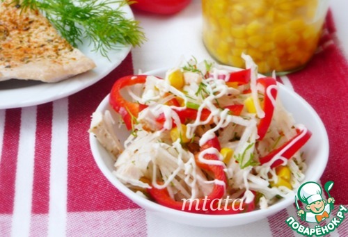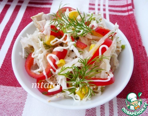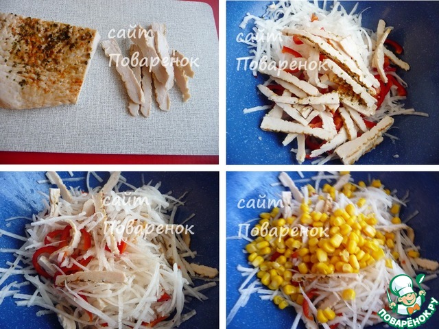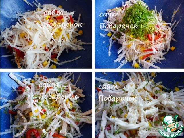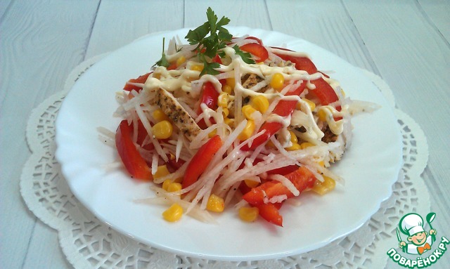 Рецепт «Салат из дайкона, индейки и кукурузы»: