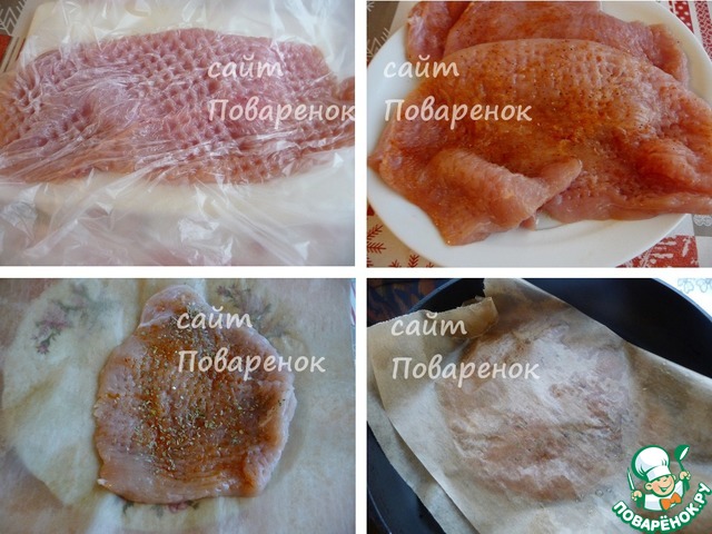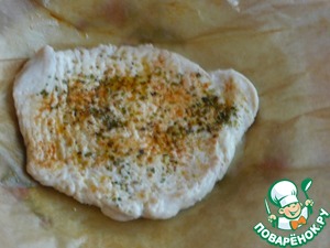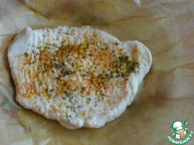 смазать весь растительным маслом, выложить кусок маринованного мяса,