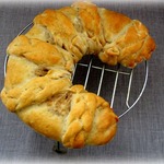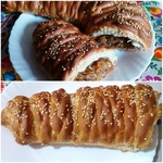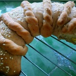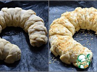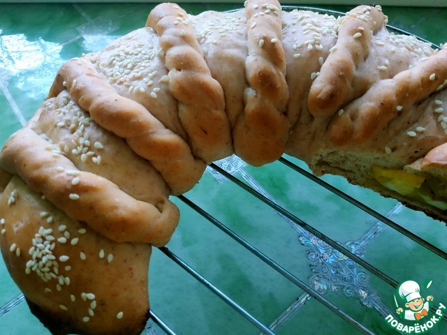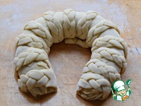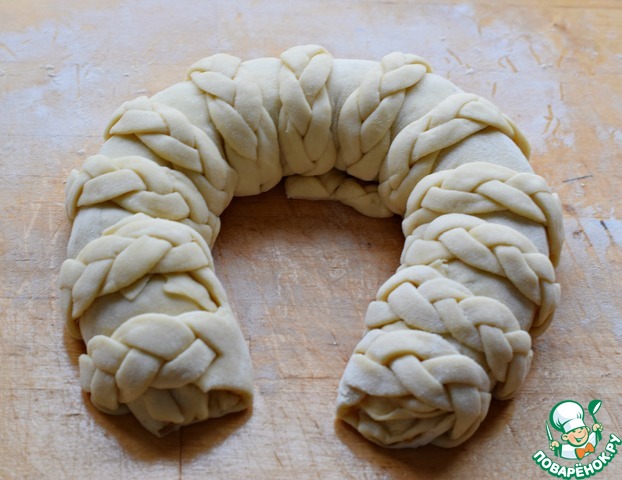 Аккуратно обернуть пирог косичками. (свернуть рулетом) Придать заготовке форму подковы (или калача) |