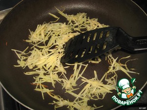 Обжариваем до золотистого цвета на сковороде в большом количестве масла маленькими порциями, выкладывая тоненьким слоем. -