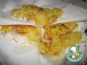 Остужаем картофель на салфетках или бумажных полотенцах, чтобы впиталось масло, стараясь прокладывать новой салфеткой каждую порцию картофеля.