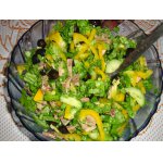 Ингредиентов в салате, в плане пропорций, должно быть примерно одинаковое количество. -