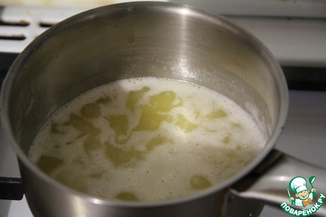 Растопить в кастрюле на среднем огне масло и подержать 3-5 минут, чтобы масло приобрело красивый ореховый оттенок. Снять с огня и немедленно перелить в другую посуду.