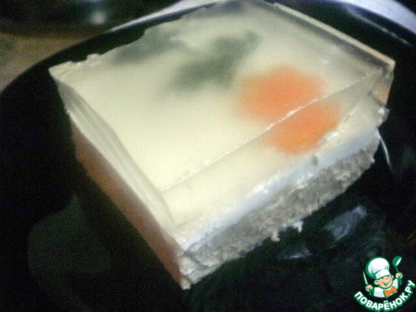 Заливаем нашу картину остатками прозрачного желе и убираем в холодильник до подачи на стол. Минут на 30, как минимум.
