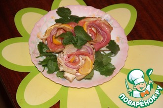 Смазать 1 ч. л. соуса, посыпать щепоткой овощной приправы.