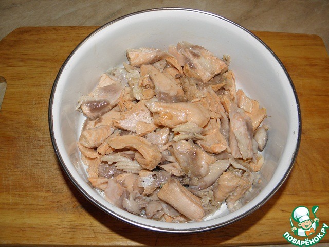 После того как рыба остыла необходимо отделить все съедобные части, мы их потом вернем назад в уху.