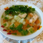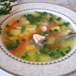 Поделюсь одним рецептом! Суп наш будет с Ух- комплектом! Расскажу о нем, что знаю! Блюдо это обожаю! Просто, вкусно и не сложно! Помечтать о лете можно! Уловить дымок костра, где готовится уха! Ну а мы готовим дома! Эта рыба всем знакома! Будем пробовать, друзья! Нам без первого нельзя!