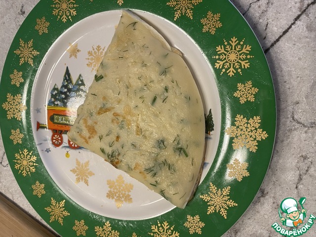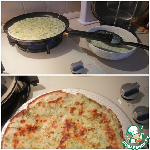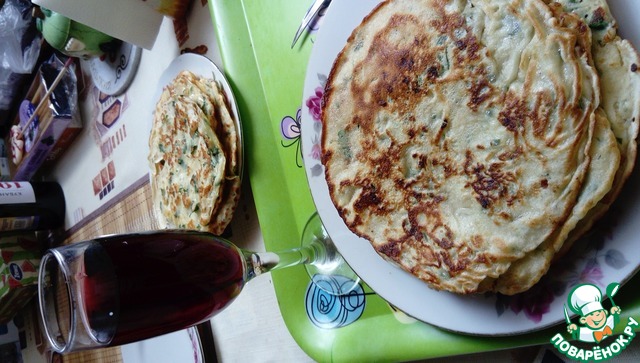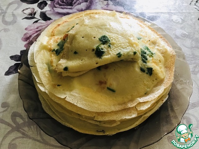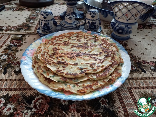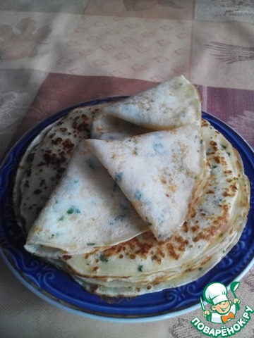 К тому же дан с пошаговыми фото. И называется "Сырные блины с зеленью", автор рецепта -- Елена.