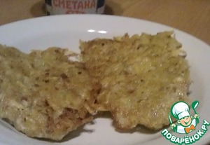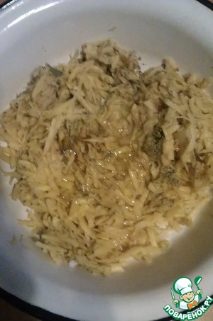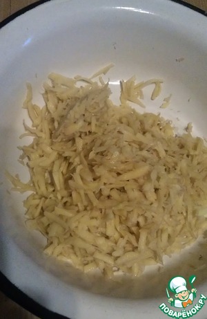 Поскольку картошка натирается на крупной тёрке, нет необходимости отжимать её от сока.