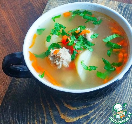 Рецепт «Суп с фрикадельками и овсяными хлопьями»: