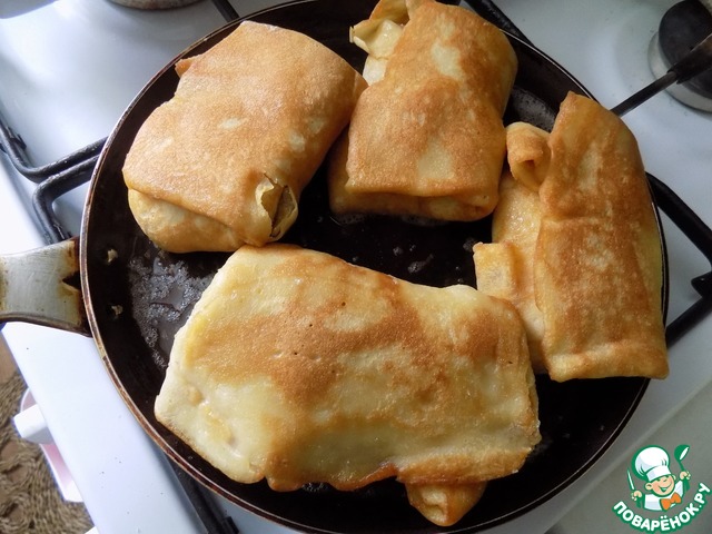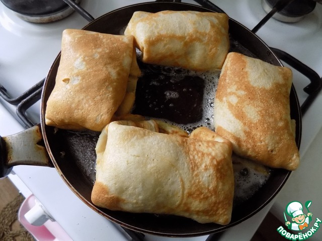 - Масло сливочное (по вкусу и желанию для обжарки завёрнутых блинов)