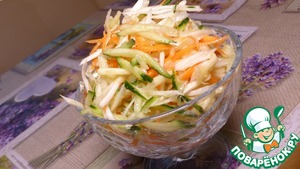 Через час натираем на терке для моркови по корейски очищенное от кожуры яблоко и огурец.