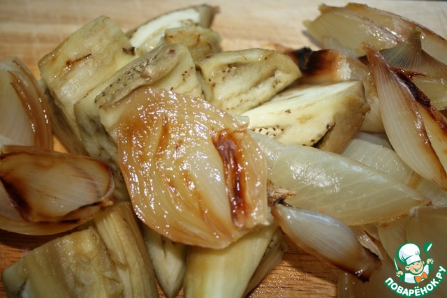 [+5]ОЧЕНЬ классная "штука"!!!!! Специфический привкус от печёного лука и чеснока, копчёный аромат, баклажан, всё это вместе создаёт замечательный вкус! Получается нежный, сытный и не жирный паштет.