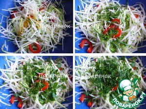 Дайкон вымыть, срезать кожицу, натереть на терке (у меня корейская).