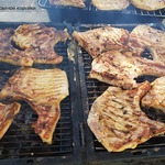 6. По истечении времени маринования готовим угли, выкладываем корейку на решётку для запекания, запекаем стейки пару минут сначала с одной стороны, а затем с другой что бы запечатать весь сок в мясе. А потом доводим до готовности периодически переворачивая стейки над углями.
