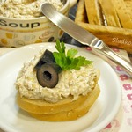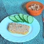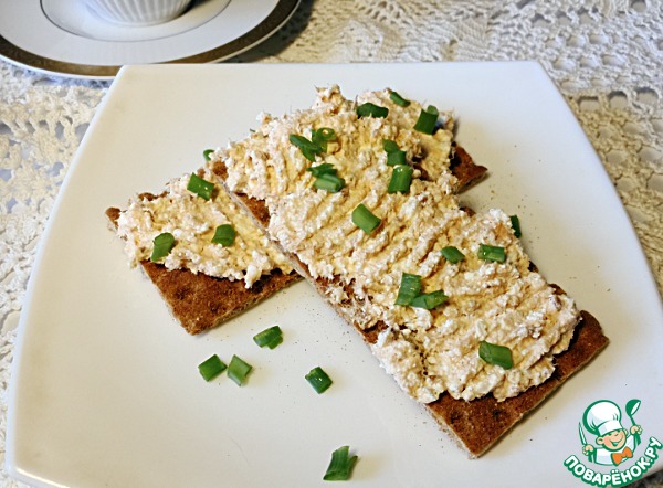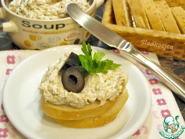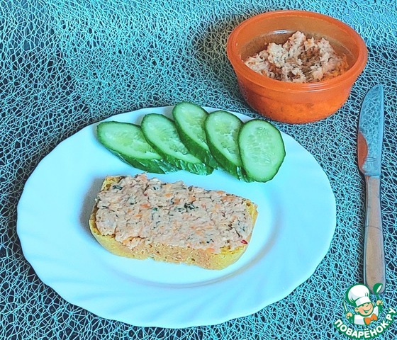 Хочу с вами поделиться своими полезными завтраками. Я стараюсь есть побольше полезной пищи в силу своего возраста. Вот один из моих завтраков. Это делается очень быстро, пока делается кофе. Рийет или паштет? не знала, как назвать. Или просто намазка. Красиво оформив, вы можете подать его и на праздничный стол, например: в тарталетках или на чипсах... ваша фантазия. Очень пригодится и для нечаянно нагрянувших гостей.