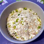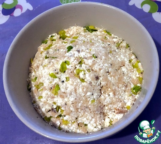Я буду делать риет из лосося, который я запекала в духовке без масла и только чуть присолив. Я его делала с вечера на ужин. Рыбу можно взять любую, вами любимую: скумбрию, горбушу... и т д. Можно использовать консервы рыбные качественные, без добавления масла, т е натуральные. Иногда делаю с ними и честно сказать, что с ними нравится больше! Кусочек освободила от косточки и очень тщательно размяла. Творог взяла мягкий 1%. Творог так же можно взять любой, вами любимый! Выложила всё в посуду, чуть посолила и немного поперчила. Солить и перчить не обязательно тем, кто придерживается диеты построже. У петрушки нам понадобятся листики. Рубим их мелко.