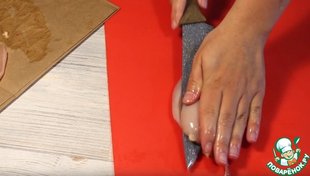 Положим в полиэтиленовый пакет (или накроем пленкой) и отобьём