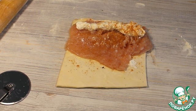 Слоеные рулетики с курицей и сыром