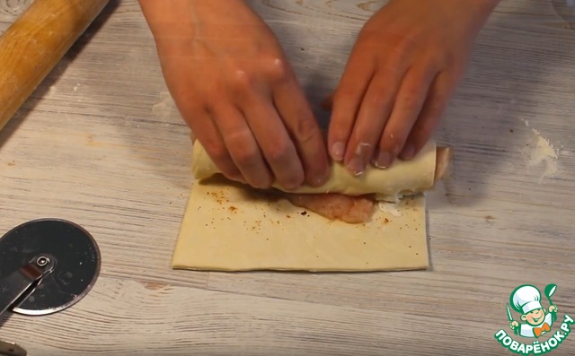 Рецепт «Слоеные рулетики с курицей и сыром»: