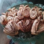 Разворачиваем плюшку сразу на противне. При желании смазываем чаем / яйцом / молоком и т. п. Даем постоять 5-7 минут. Выпекаем в предварительно разогретой до 180* духовке примерно 20 минут.