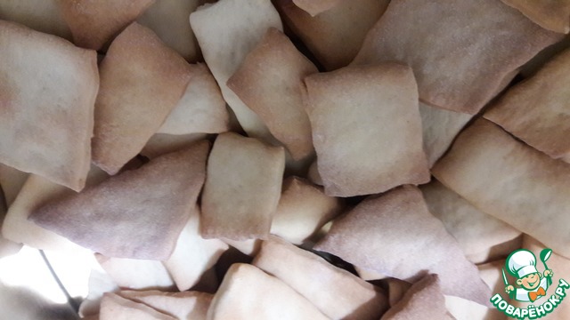 Печенье воздушное, хрустящее и в меру сладкое. Тесто не песочное или сахарное, а затяжное. Это не значит, что его необходимо долго выстаивать и готовить. Технология производства затяжного печенья заключается в использовании небольшого количества сахара и масла (растительного), благодаря этому тесто получается "крутое", как для пельменей. Данное печенье может быть приготовлено в качестве постного или диетического блюда. Рецепт найден на сайте вкусных советов.