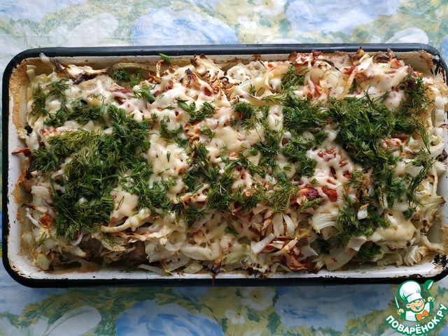 Сыр натереть на крупной терке, петрушку и укроп нарезать. За 5 минут до окончания времени приготовления посыпать запеканку сыром. Готовую запеканку посыпать зеленью. Приятного аппетита!