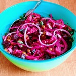- Лук красный (небольшая луковица, можно взять любой лук: репчатый или белый) — 1 шт