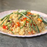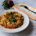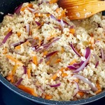 Если Вам захотелось разнообразить меню своих гарниров, я бы посоветовала угоститься булгуром, который я люблю готовить и в будни, и в праздники. Булгур - это пропаренное и дроблённое зерно твёрдых сортов пшеницы. Он великолепно гармонирует с мясом, курицей и овощами. Сочетание маринованной моркови с луком, сладковатые нотки изюма, ароматы специй и рассыпчатый булгур, и вот оригинальная пикантно-пряная палитра вкусов у Вас на столе!!! Угощайтесь на здоровье!!!