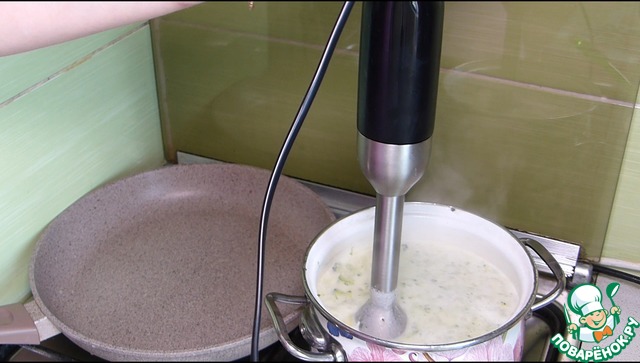 Ждем закипания, выключаем огонь и перебиваем блендером до однородности.