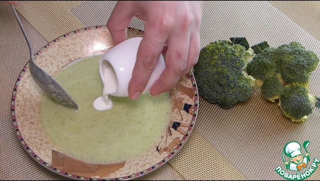 Нежный и очень вкусный крем-суп с капустой брокколи готов. Подаю со сливками. А Вам я желаю приятного аппетита, хорошего настроения и всего самого наилучшего!