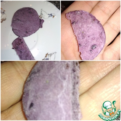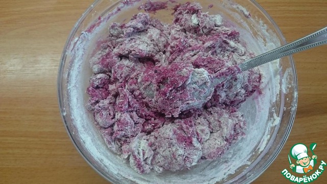Ягодное печенье с ЧЕРНОЙ СМОРОДИНОЙ готовила три раза подряд из одних и тех же ингредиентов, но по разной технологии. Цвет сохранялся во всех случаях, менялась только консистенция. Тут большую роль играет выбранная ягода.