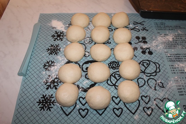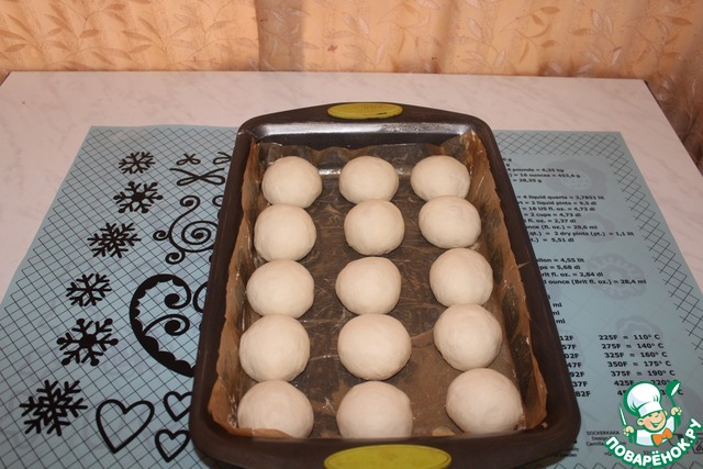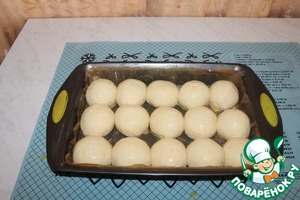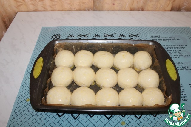Снова подкатываем каждую булочку и выкладываем в форму. Даем подойти 20 минут.