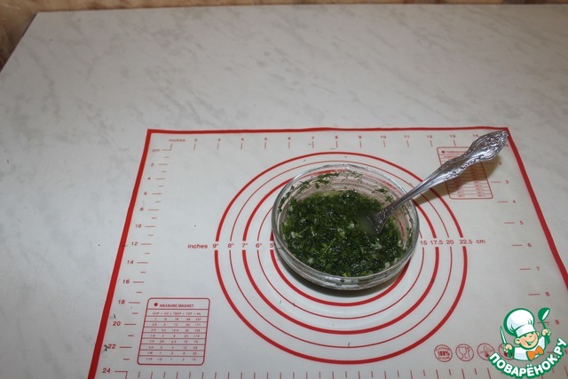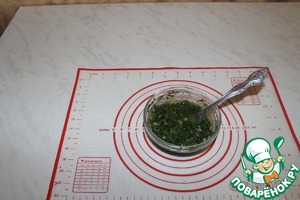 Приготовим заливку. Укроп мелко нарезаем и смешиваем все ингредиенты.