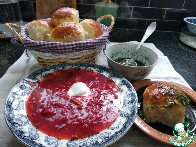 Давайте приготовим очень вкусные пампушки с зеленью и чесноком. Такие пампушки хорошо подать к борщу.